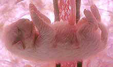 Die Zehen sind vollständig getrennt, die Krallen ausgebildet. Die Tasthaare sind sichtbar. Sie Größe beträgt etwa 6,5 cm. |
